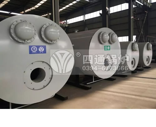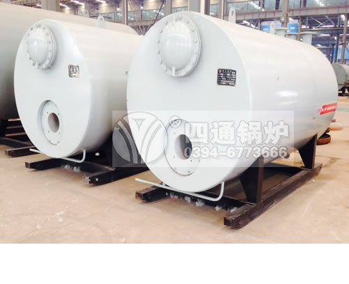 热水锅炉利用水在低压情况下沸点低的特性,快速加热封密的炉体内填装的热媒水,使热媒水沸腾蒸发高温水蒸汽,水蒸汽凝结在换热管上加热热换管内的冷水,达到供应热水的目的。